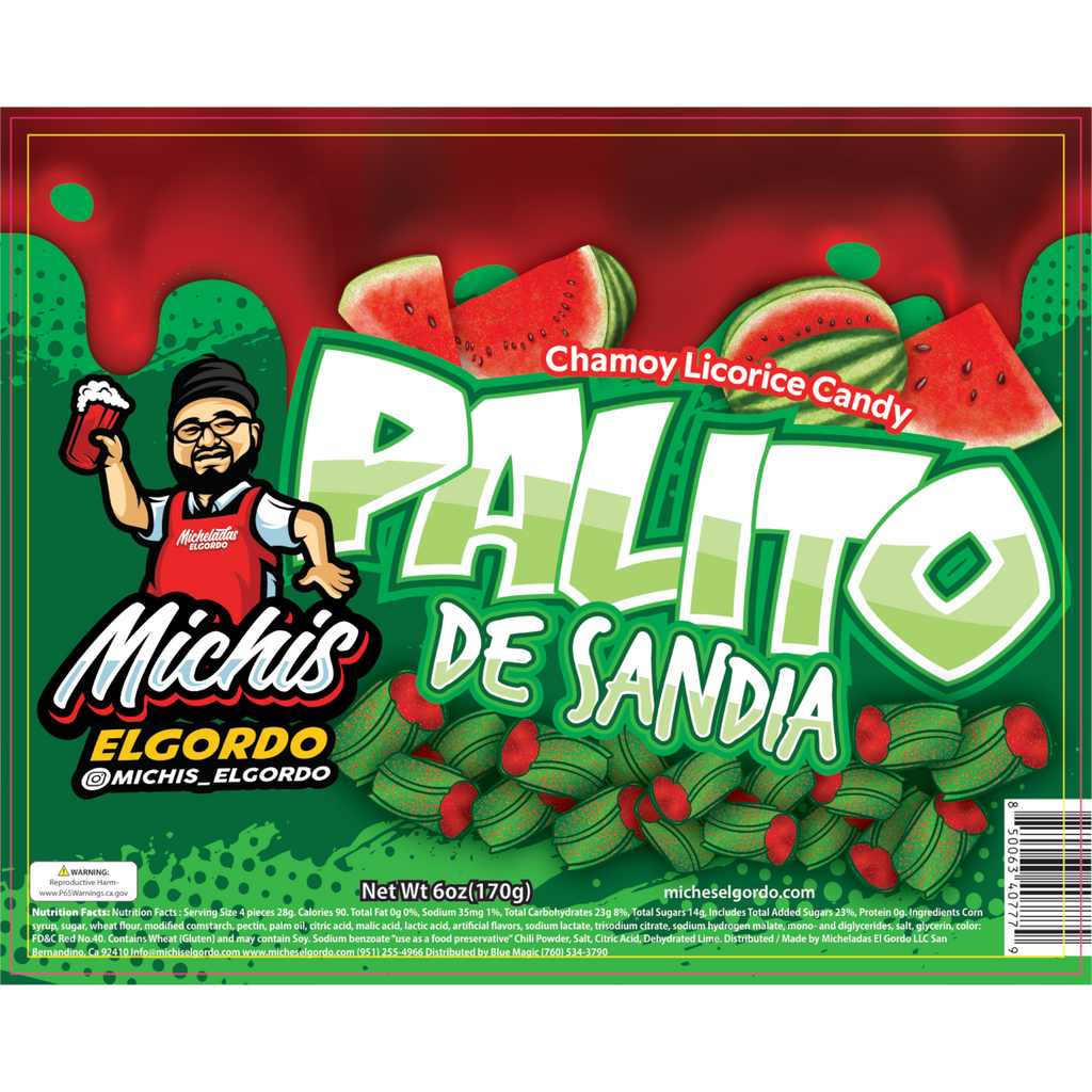 Micheladas El Gordo Palito De Sandia. Watermelon licorice bites covered in El Gordo's famous blend