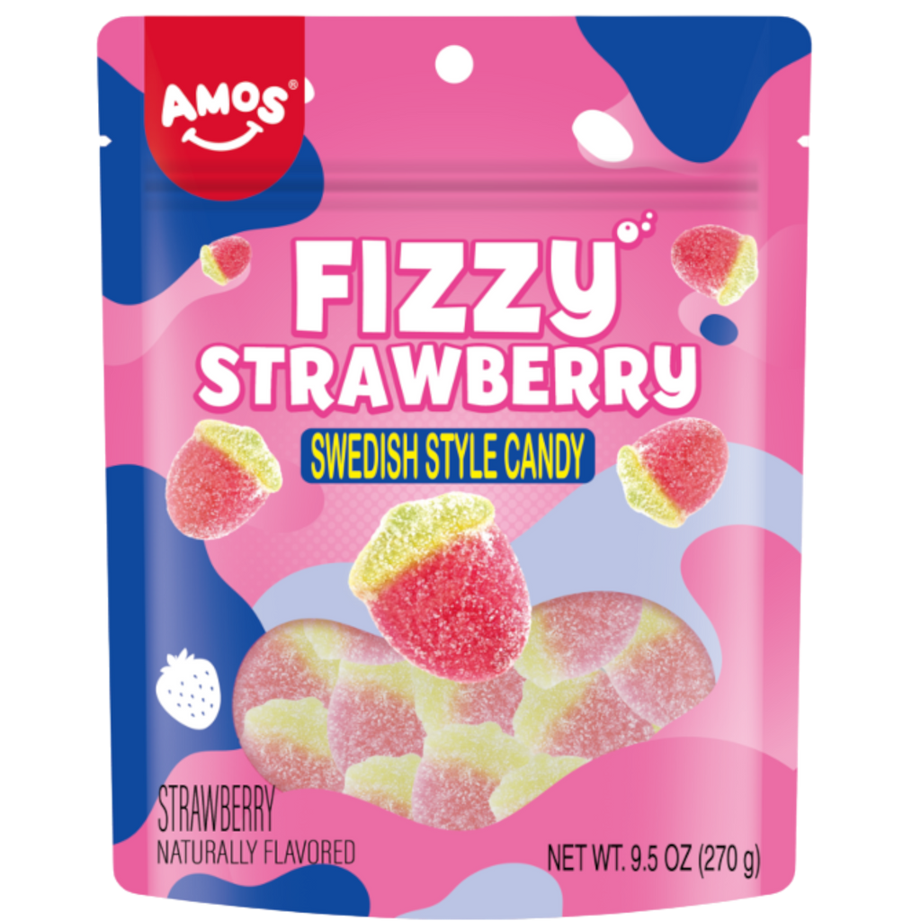 Amos Swedish Candy Fizzy Strawberry. An all new item from Amos, this Swedish style candy is both delicious and trending on tik-tok!
